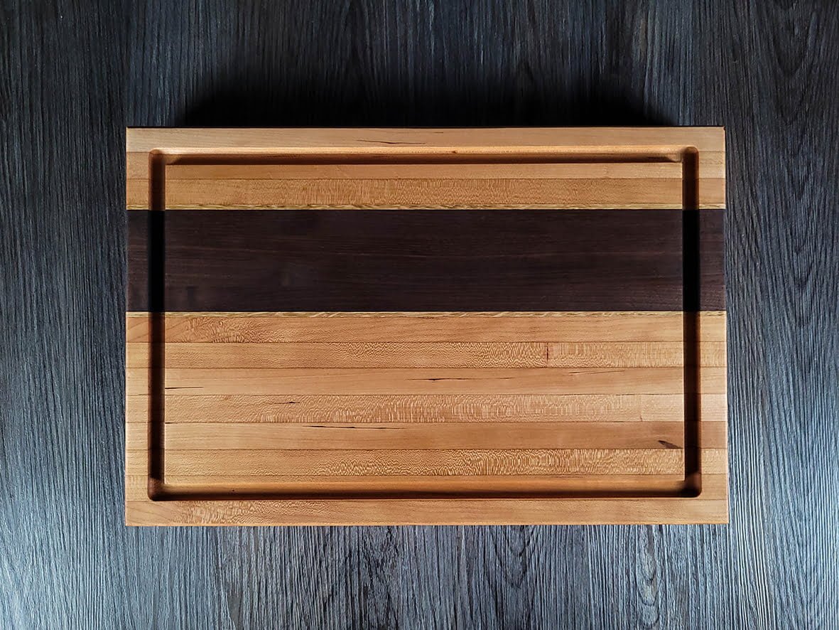 Cherry and Walnut Cutting Board 18" x 12" x 1 1/2" With Rubber Feet and Inset Handles Juice Groove