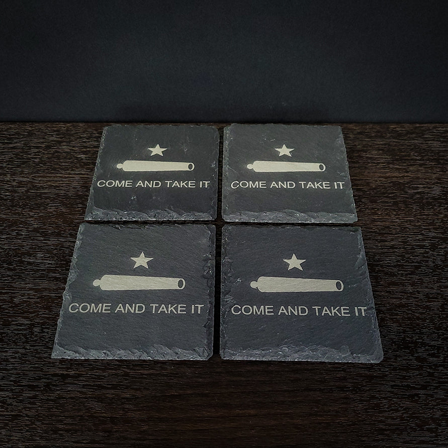 Come and Take It Laser Engraved Slate Coaster Set