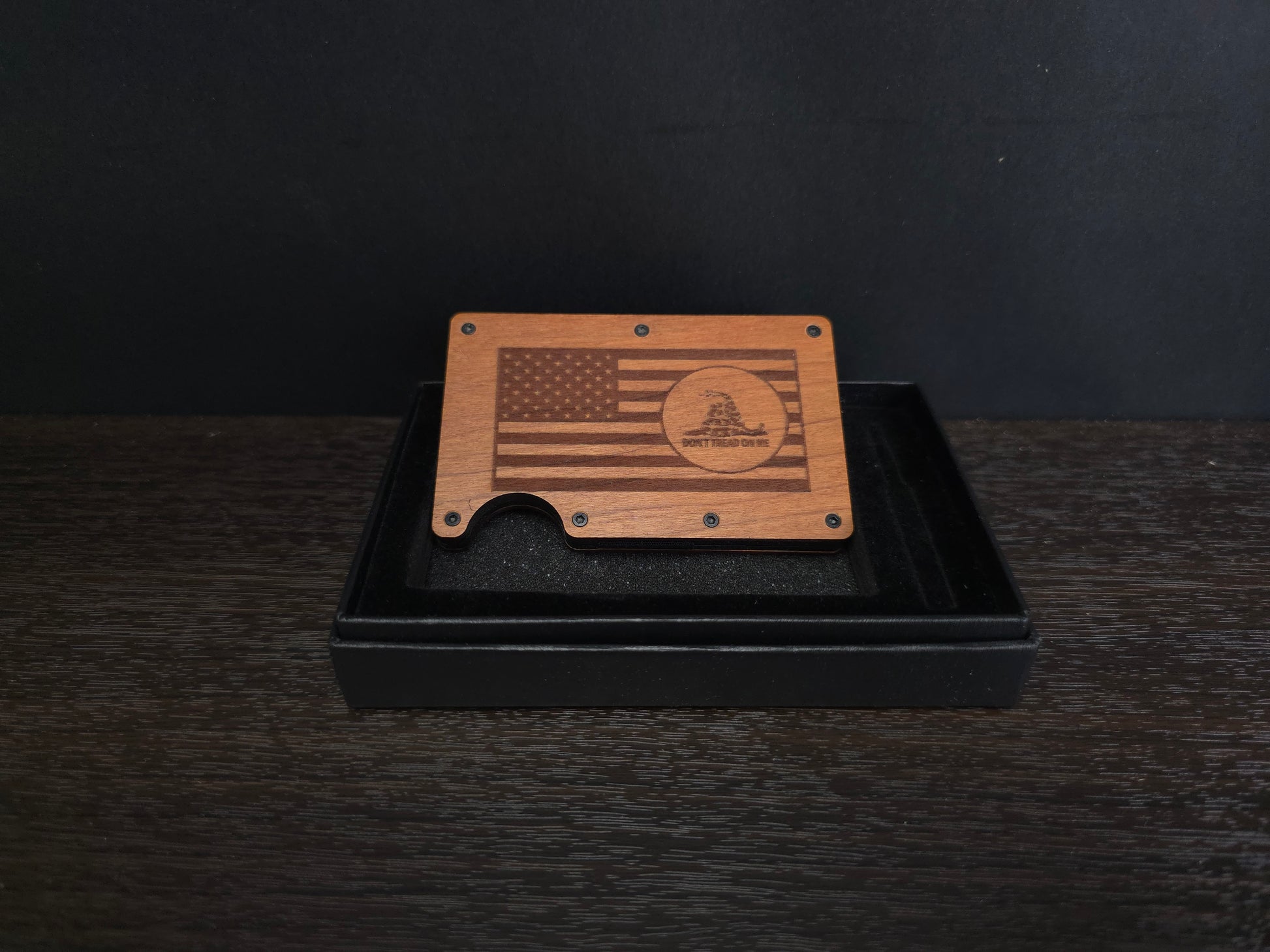 Crafted with precision, the Don't Tread On Me Wooden Wallet combines durability with distinctive style. Made from high-quality wood, this wallet offers a lightweight yet sturdy solution to carry essentials securely. Its unique design symbolizes strength and independence, making it a practical accessory for those who appreciate craftsmanship and meaningful detail. Perfect for everyday use, it balances functionality with a bold statement.