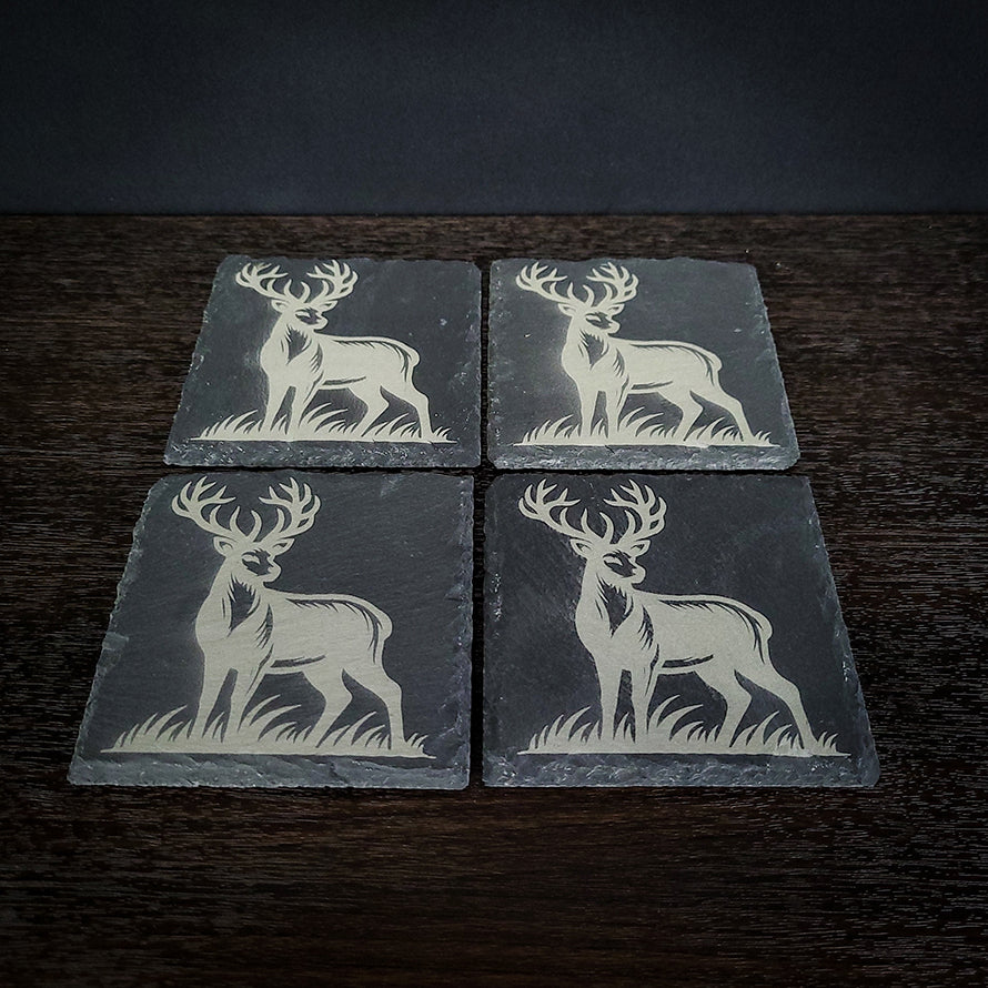 These laser engraved deer slate coasters are perfect for adding a touch of nature to your home decor. Made from high-quality slate, they are not only durable but also visually appealing. The laser engraving adds a unique and elegant touch, making them a great addition to any table setting. Protect your furniture while adding a touch of style with these coasters.