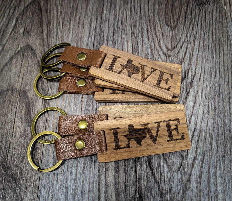 Expertly crafted and laser engraved, our Wooden LOVE Keychains make a unique and stylish addition to any keychain collection. Made from high-quality wood, these keychains are a durable and trendy way to show your love. Get yours today and add a touch of elegance to your keys.