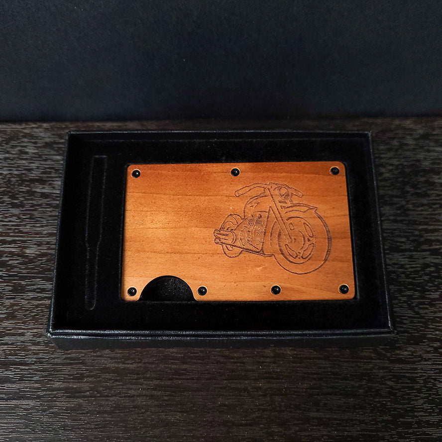 This Motorcycle Laser Engraved Wooden Wallet is a unique and stylish accessory for any motorcycle enthusiast. Made with high-quality wood and precision laser engraving technology, this wallet showcases intricate motorcycle designs that are sure to catch attention. Stay organized and stand out with this one-of-a-kind wallet.